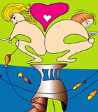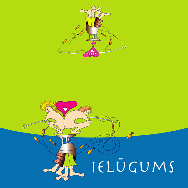invitation card. Original drawings upon couple characteristics presented.